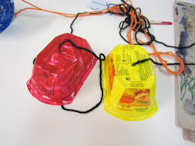 Koulussa vietettiin kierrätysviikkoa. Käsityö/askartelussa kannoin oppilaille kassillisen roskaa, joista jokaisen piti valmistaa jokin käyttötarvike. Annoin oppilaiden itse ideoida tarvikkeensa ohjailematta juuri lainkaan. Askartelun lisäksi piti tehdä tuotteesta kaunis.